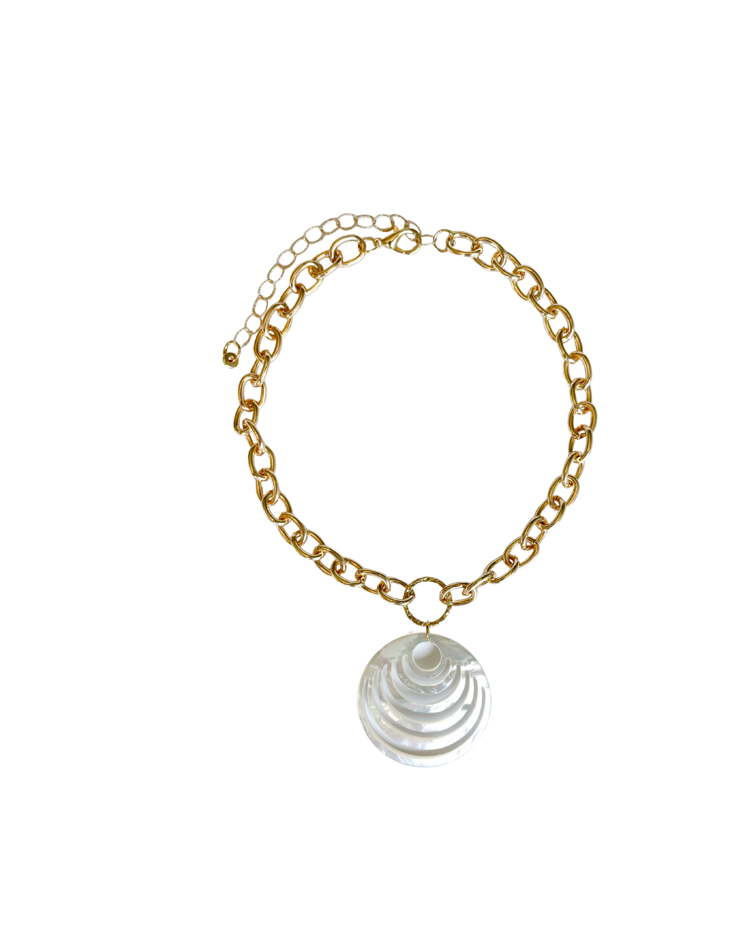 Collar corto con cadena y dije de madre perla.