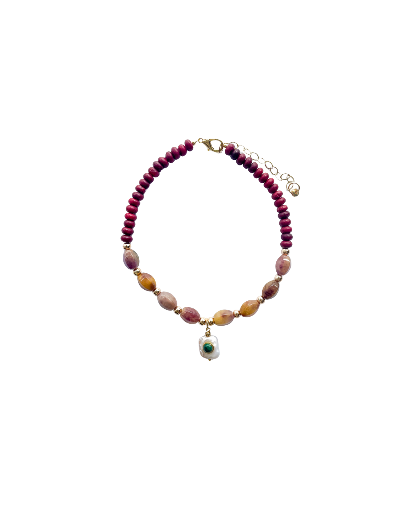 COLLAR CORTO CON ÁGATAS Y PERLA