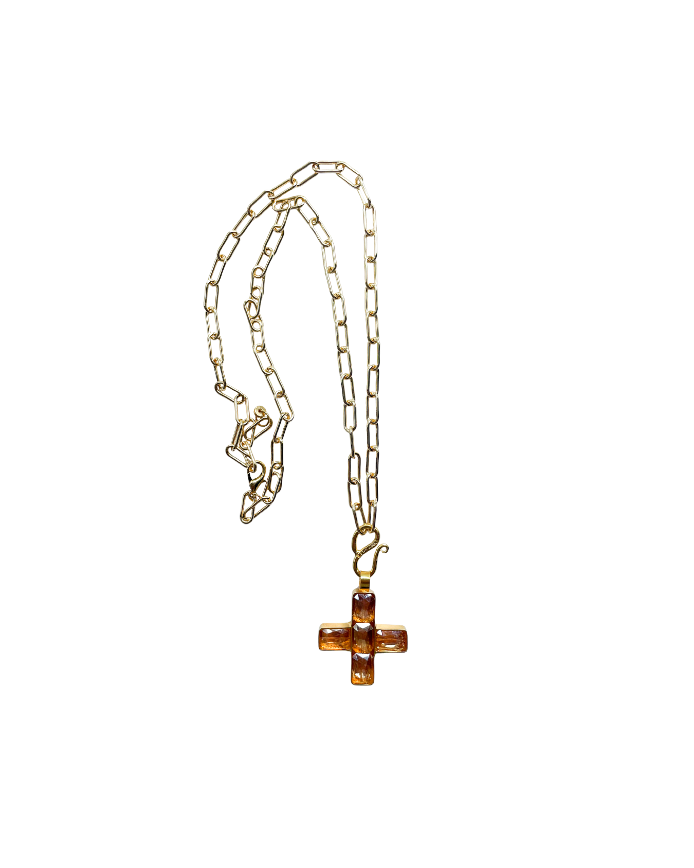 Collar largo de cadena ajustable con dije de cruz con cristal.