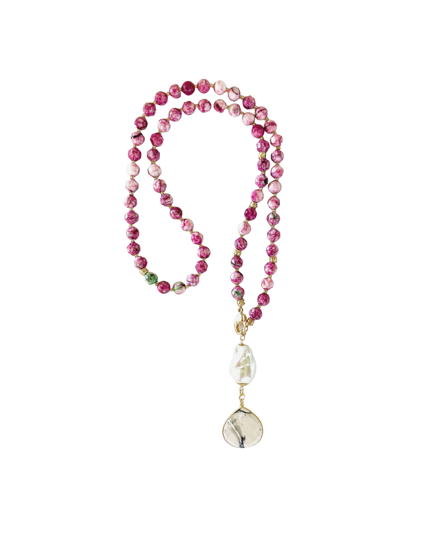 Collar largo con ágatas y una perla cristal.