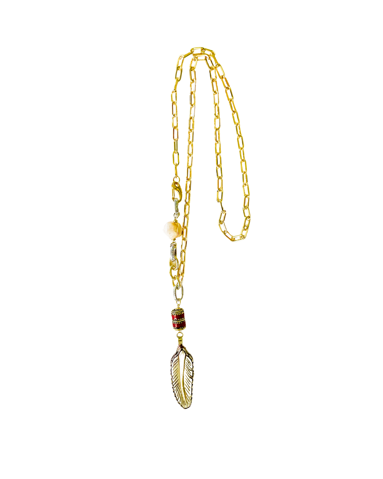 COLLAR LARGO CON CADENA Y DIJE HOJA